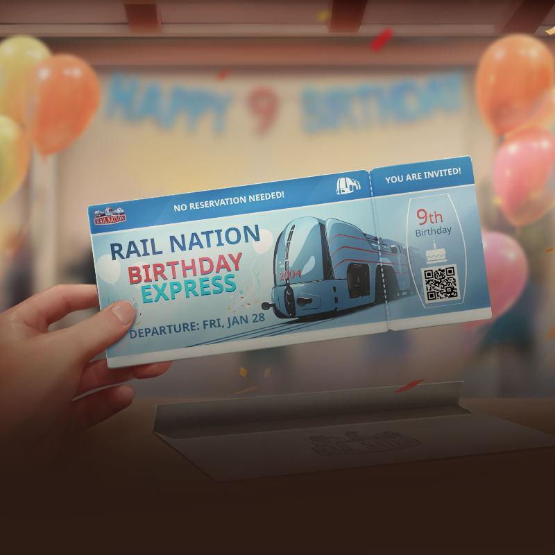 nachdem 2022 nun voll im Gange ist, wollen wir offiziell den 9. Jahrestag von Rail Nation feiern! Alle Gute zum Geburtstag wünschen wir uns!