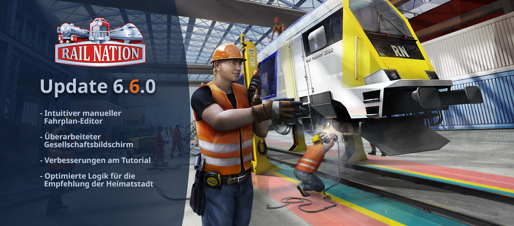 im Lokschuppen war ganz schön viel los in letzter Zeit. Unsere Ingenieure und Mechaniker haben in den letzten paar Monaten unermüdlich an der Überholung von Rail Nation gearbeitet. Das Ergebnis ihrer Arbeit ist das erste aus einer ganzen Reihe von Updates, die jede Menge von Verbesserungen an Rail Nation enthalten! Für das Update 6.6.0 haben wir ein Paket mit Verbesserungen am manuellen Fahrplan-Editor, am Tutorial und an den Gesellschaften geschnürt. Hier findet ihr die wichtigsten Änderungen und Verbesserungen am Rail-Nation-Erlebnis: